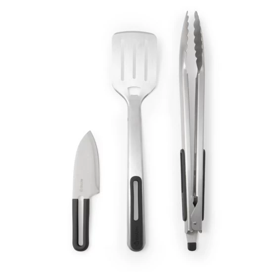 Roll up BBQ tool set. Portable BBQ tool set designed for cooking and baking with fire. The extra-long design provides a comfortable distance from flames and heat, while the roll-up sheath keeps everything in order. Made of durable and rust resistant food grade stainless steel. Use with BioLite FirePit, BioLite CampStove, or the outdoor cooking experience of your choice.