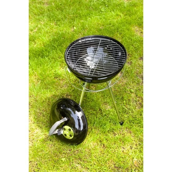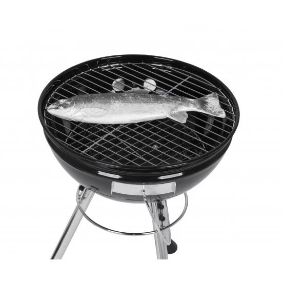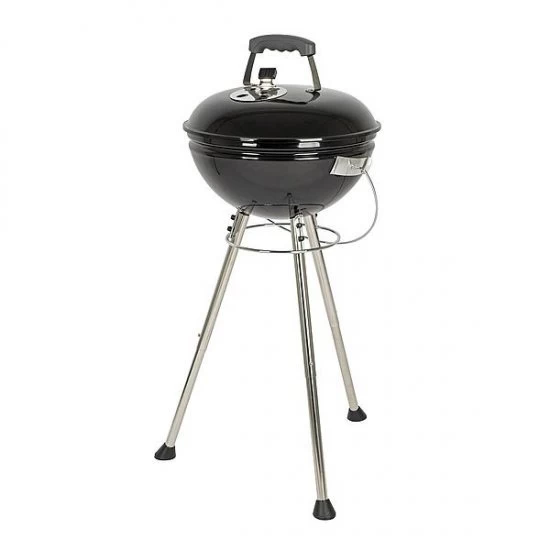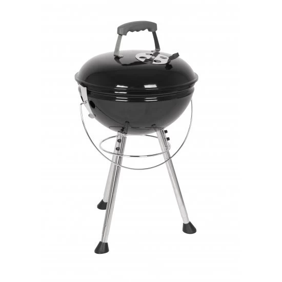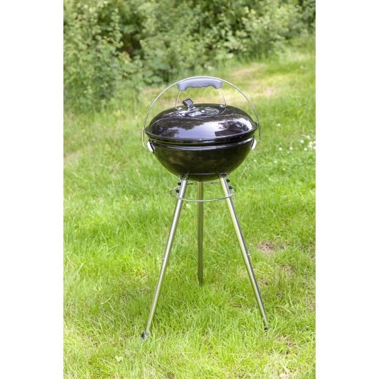 A high stable 3-legged charcoal barbecue with handy wire handle. Equipped with a lid with adjustable ventilation and heat-resistant handle. Can be used both high and low, the different cooking heights are 49 and 68.5 cm. Ideal for camping, in the park or just at home.