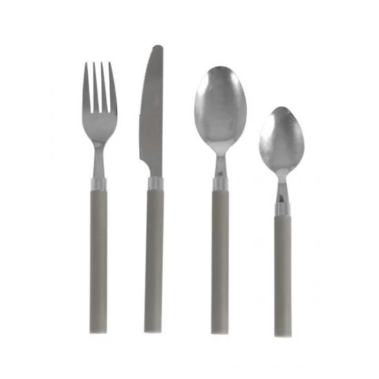 A compact 4-piece cutlery set. The ideal 1-person cutlery set to take with you on a trip. This set consists of a knife, a fork, a spoon and a teaspoon.