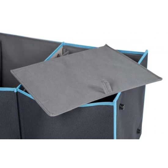 A multifunctional and foldable camping cupboard. The cabinet has compartments which are closed with a door. The case is made of 600D Oxford polyester. The compartment cupboard offers plenty of storage space and is easy to set up and very compact to take with you.