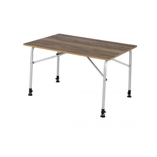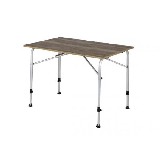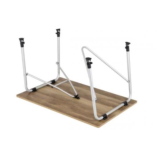 A lightweight but very stable camping table. The table has a fiberglass top with plastic edge which is heat resistant and waterproof. The frame is made of aluminum and the camping table is equipped with feet with stabilizers so that the table stands firmly on any surface. The legs are also adjustable in height (stepless).