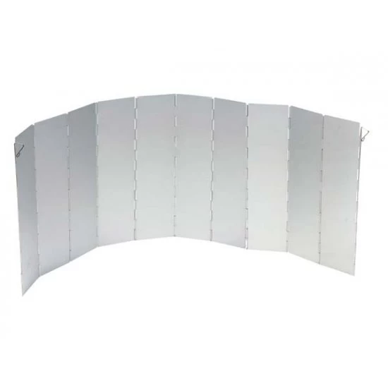 A fully collapsible universal cooking windshield. This cooking windshield can be used in combination with a camping stove or a gas burner. This 10-piece cooking windscreen is placed around the burners or around the burner. This prevents the flame from blowing out and the heat from the flame is transferred to the pan more effectively. After use, the windscreen is easy and compact to store.