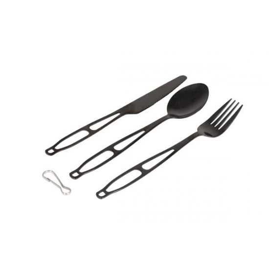 A 3-piece outdoor cutlery set in a handy pouch. The cutlery set is made of stainless steel and therefore ideal for outdoor use.