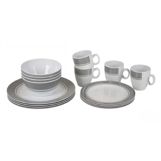 Bo-Camp Tableware 100 Melamine 16 Pieces White Gray