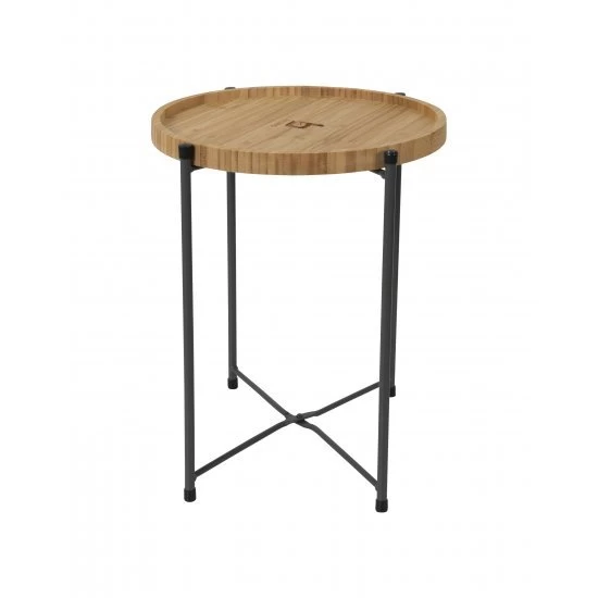 A compact and trendy side table from the Urban Outdoor collection. The steel legs are easy to fold, making this table compact to take with you. The bamboo top of this table is removable and can therefore also be used as a tray. Not only very practical but also decorative for indoors and outdoors, at home or when travelling.