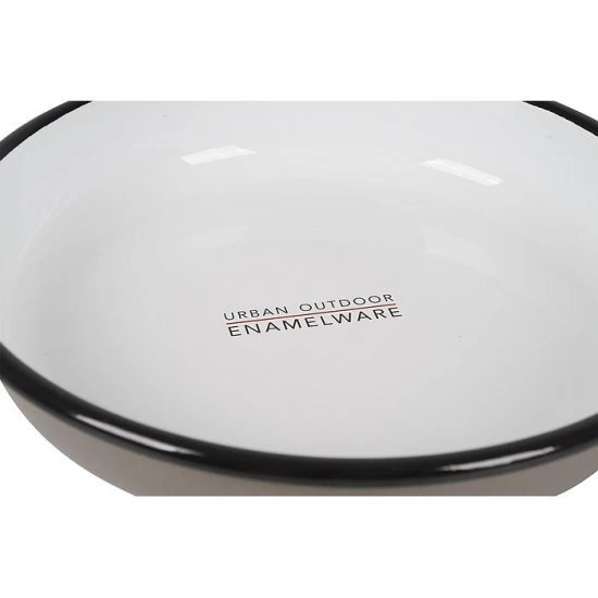 A heavy quality and traditional enamel frying pan. Delicious meals can be prepared with this indispensable classic. The heavily enamelled, extra thick and hard top layer ensures a strong and high quality finish. This makes this frying pan suitable for various cooking sources such as gas, electricity, halogen, ceramic and induction. In addition, this pan is extremely suitable for use over a campfire. Extremely durable and ideal for outdoor use. Decorated with a stylish black border and dishwasher safe.