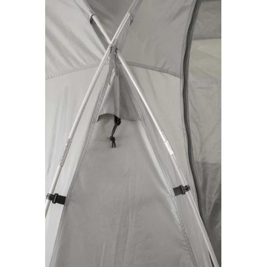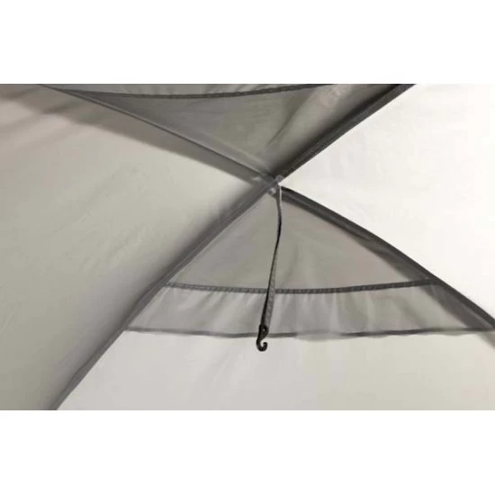 Een ruime party shelter. Uitermate geschikt voor activiteiten en evenementen buitenshuis. Het tentdoek is gemaakt van 190T polyester en is waterdicht (waterkolom 1200 mm). De partyshelter heeft 1 muskieten werende mesh zijwand en 3 zijwanden voorzien van een PVC raam. De zijwanden zijn te openen en sluiten met een rits, niet afneembaar en op te bergen in een vak in de tent. De kruisende boogstokken zorgen voor extra stevigheid en stabiliteit. Wordt geleverd met scheerlijnen, haringen en draagtas.