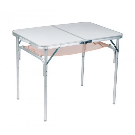 A very stable and compact camping table. This table has removable legs and a divisible table top. This makes it easy to fold the table into a suitcase model. Has an MDF table top and an aluminum frame which equals a lightweight material of excellent quality. The legs are adjustable in 2 heights, 30 and 70 centimeters. A net is attached under the table top to store things.