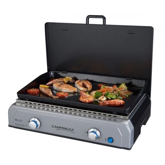 Enjoy unprecedentedly versatile preparations with the sleek and stylish new Plancha BF LX from Campingaz. The Plancha BF LX has patented Blue Flame burners for exceptionally even heat distribution with Even Temp technology.