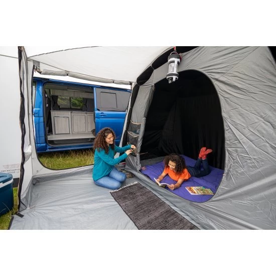 Are you going camping with two people? Then this 2-person tunnel tent Journeymaster Pro is an excellent option. This Coleman tent has a spacious living area and a sleeping cabin for 2 people. Thanks to the BlackOut bedroom technology, 99% of the daylight is blocked in the sleeping cabin for a better night’s sleep. No one likes spending endless hours setting up a tent. That’s why this tent is designed so that you can set it up in just a few minutes. The fiberglass tent poles are provided with handy color codes. This 2-person tunnel tent offers a spacious living area and a spacious sleeping cabin. The large windows in the living area provide sufficient daylight and a spacious feeling. For a better night’s sleep, the sleeping cabin in this Coleman tent is equipped with the patented BlackOut bedroom technology. This technique blocks 99% of daylight. This allows you to sleep deeper and the tent maintains a pleasant temperature. The tent has a barrier-free entrance. Ideal for prams, buggies or a wheelchair. Nothing is more important in a tent than good ventilation. That is why all our tents are equipped with sufficient ventilation grilles to prevent condensation and to ensure a continuous flow of fresh air.