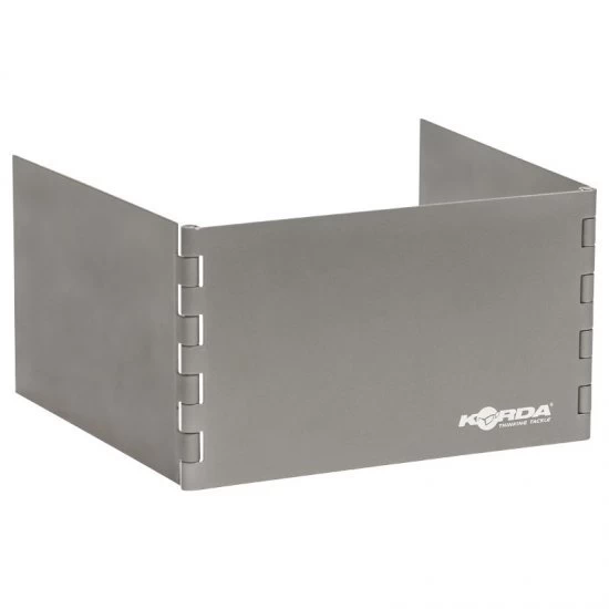 The Korda Windshield offers your gas burner the perfect protection against harsh weather conditions so that you are always cooking or heating efficiently. The foldable and sturdy aluminum plates wrap around your burner to protect the flame from the wind. Thanks to the special design, the windshield can be folded completely flat and fits perfectly in the Compac Cookware Bag. The Korda Windshield is constructed from strong anodized aluminum and finished with a laser-engraved Korda logo. The “large” version is designed for use with petrol and bottled gas burners. Dimensions (flat): 21.5cm x 23cm.