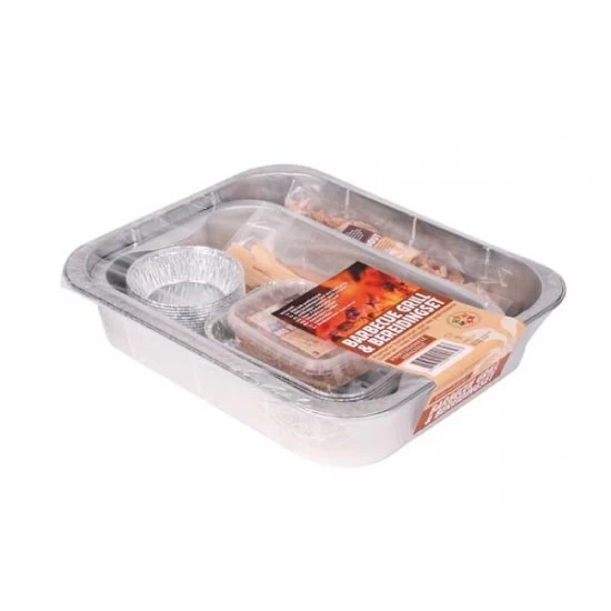 A professional preparation set for the barbecue. Equipped with 4 different sized grill dishes/grill trays (9 pieces), 10 sauce & salad trays, 30 bamboo skewers, 60 bamboo skewers, 1 box of fire herbs and a bag with smoke chips. Nice gift tip!