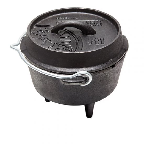 A traditional and multifunctional cast iron pan. This Dutch Oven is ideal for preparing meals over an open fire or on hot coals.