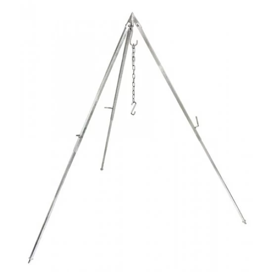 A very stable 3-leg. This 3-leg is ideal for attaching the Dutch Oven and then hanging the pan over the fire. Has adjustable legs, so that it can be adjusted stably even on an uneven surface. The tripod can be adjusted to different heights. Also suitable for cooking with other pans over a campfire.