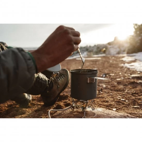 The Express Spider is by far one of the lightest stoves and a perfect alternative to any sit-on-top stove. Despite its low weight, the Express Spider is durable and stable. The preheating coil allows the stove to perform even at low temperatures and creates a 2000W flame that can boil a liter of water in five minutes. The control knob offers finely tuned performance and is attached to the gas cylinder, reducing the risk of burns. This stove comes with a heat reflector and a nylon storage bag. The Express Spider MultiFuel Kit is available as an accessory if you want to upgrade to a liquid fuel stove for use with naphtha fuel and unleaded gasoline and even kerosene in an emergency.