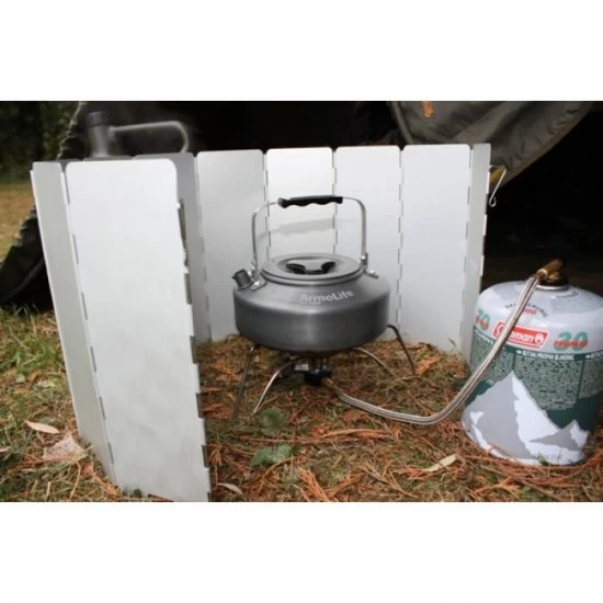 Speciaal windscherm om rond je gaspit te zetten zodat deze efficiënter werkt. Is compact op te vouwen en wordt geleverd in een plastic opberg box. Het windscherm is voorzien van spikes aan de onderzijde zodat deze stevig in de grond geduwd kan worden.
