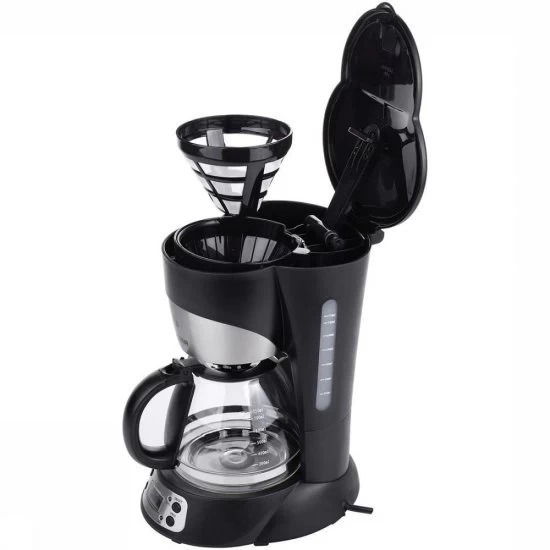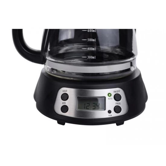 An elegant coffee maker with digital control panel. This coffee maker is suitable for 6-8 cups of coffee per session. The glass coffee pot is placed on a warming plate to enjoy hot coffee for an extra long time. In addition, the coffee maker is equipped with an anti-drip system, a water indicator, a digital clock and timer and a permanent and removable filter. This coffee maker has a power of 700 Watt and works on 230 Volt.