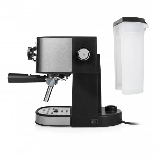 A stylish espresso machine with or steam pipe, so you can easily prepare all coffee varieties such as cappuccino, latte macchiato. The espresso machine is equipped with automatic shut-off after 30 minutes and non-slip feet. In addition, it has a water reservoir with a volume of 1.4 liters, suitable for 2 cups. This espresso machine has a power of 850 Watt and a pressure of 15 bar.